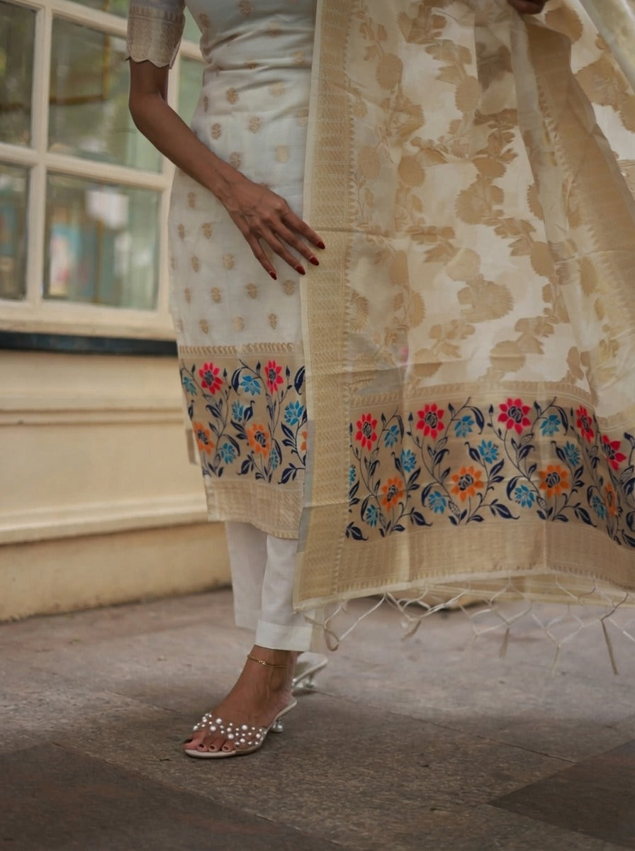 Woven Cotton Kurta Set with Dupatta β Lightweight Daily Wear | SilkBliss Fashion