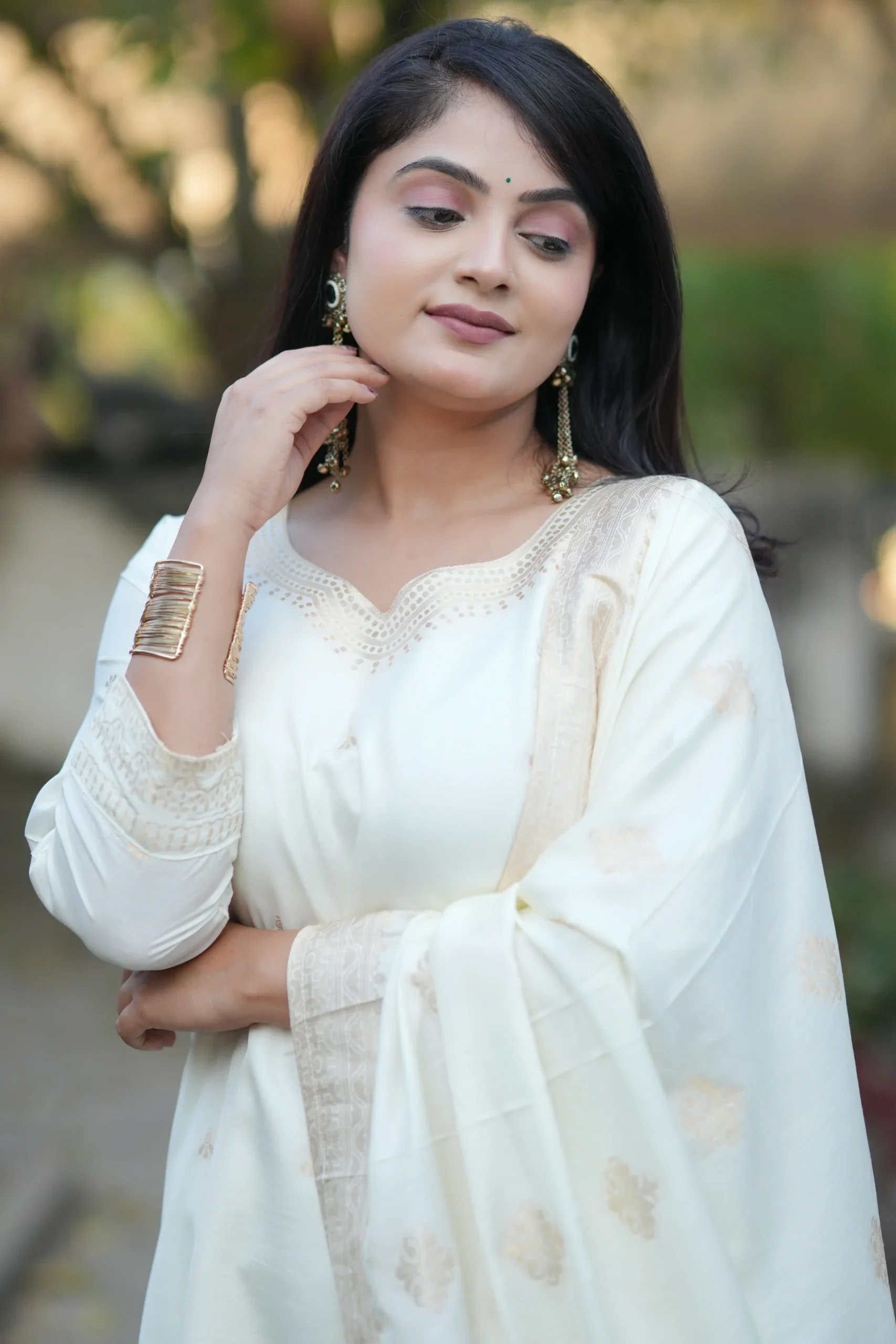 Perfect for festive gatherings, casual celebrations, or daytime occasions, this outfit blends simplicity with timeless grace, making it a versatile addition to your wardrobe.