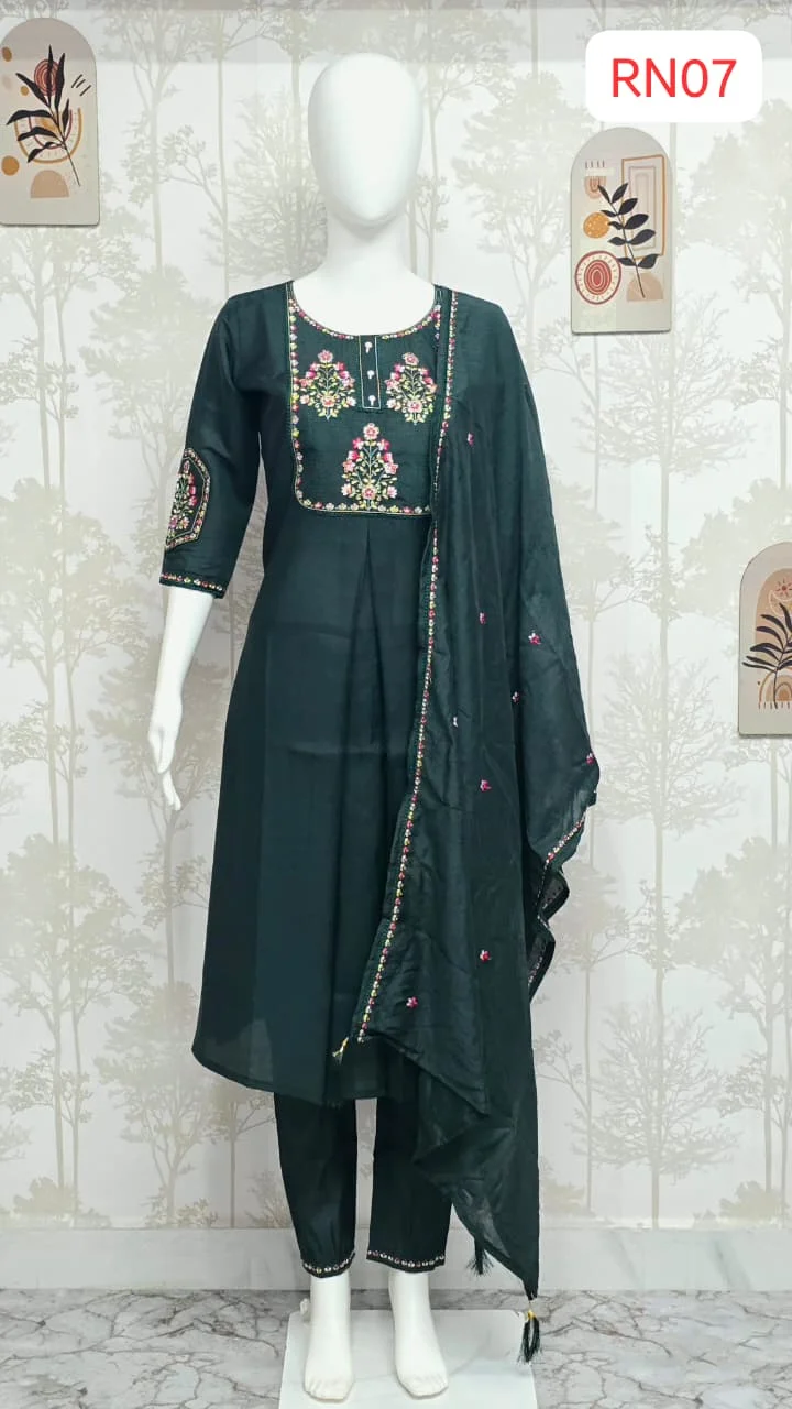 Be the first to review “Premium Roman Silk 3-Piece Set: Intricate Floral Neck & Sleeve Embroidery” Cancel reply