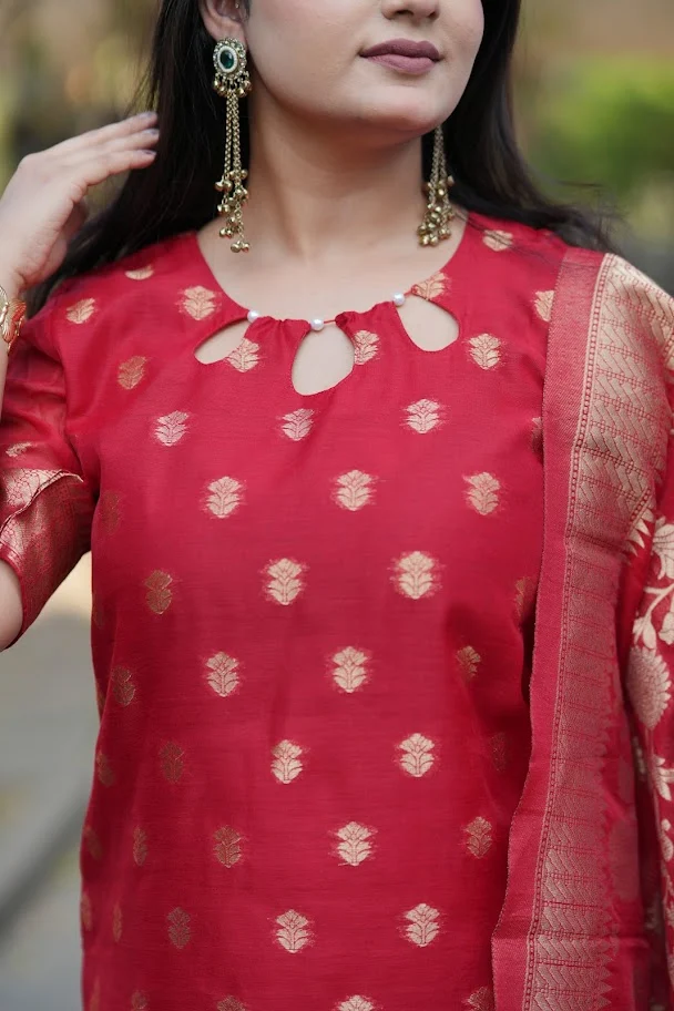 Woven Cotton Kurta Set with Dupatta – Lightweight Daily Wear | SilkBliss Fashion